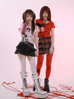 EvilTooth toothache rock girl print street sweet cool Asian culture short-sleeved T-shirt round-neck