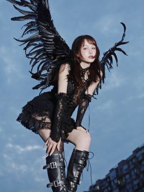 EvilTooth Death Note Dark Gothic Black Feather Sling Dress Punk Subculture